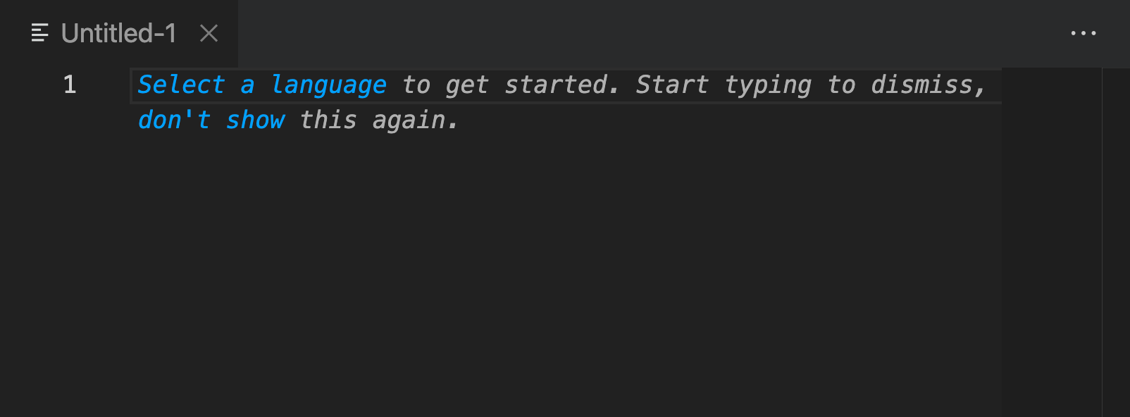 Inne i VSCode lager vi først en ny fil ved å klikke file->new file. Du burde du få opp en tom fil: